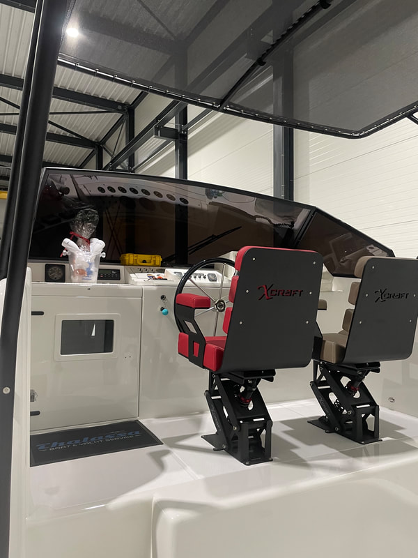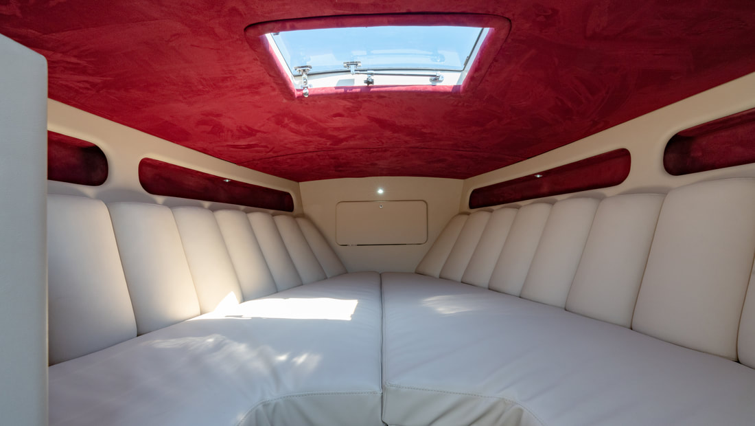 - Maatwerk polyester motorluik met elektrische bediening, geïntegreerd zonnedek en extra opbergruimte.