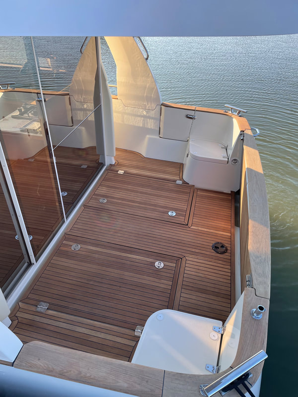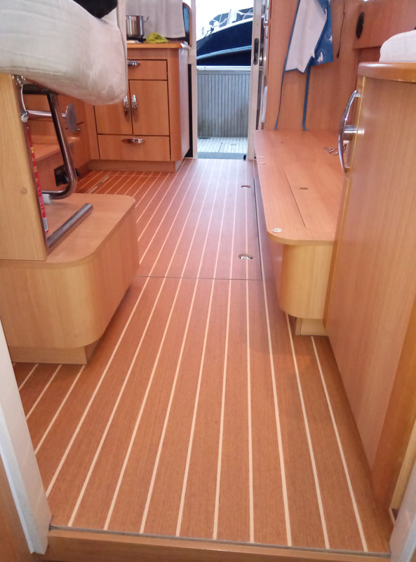 - Vernieuwing van het interieur met een hoogwaardig Nautifloor kunststof teakdek.