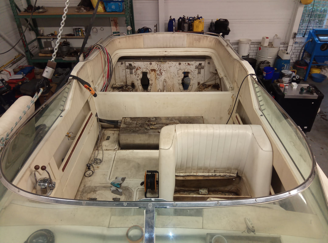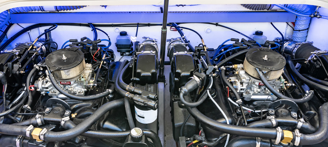 - Herinrichting machinekamer met indirecte verlichting en twee krachtige V8 7,4L Mercruiser motoren.