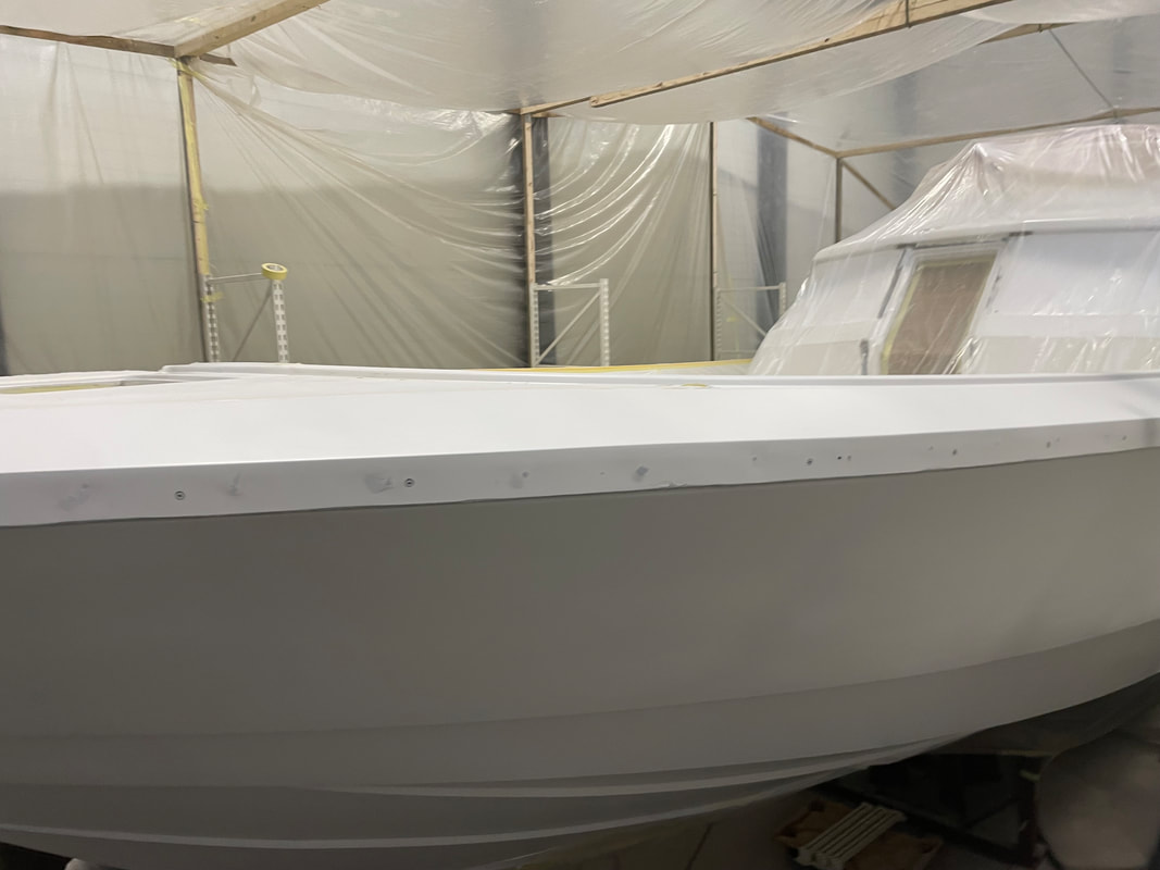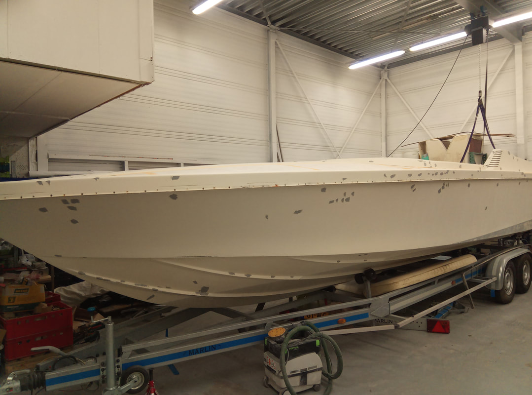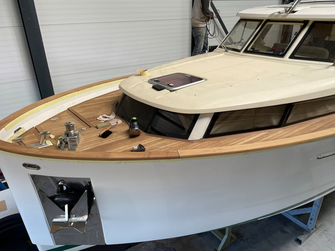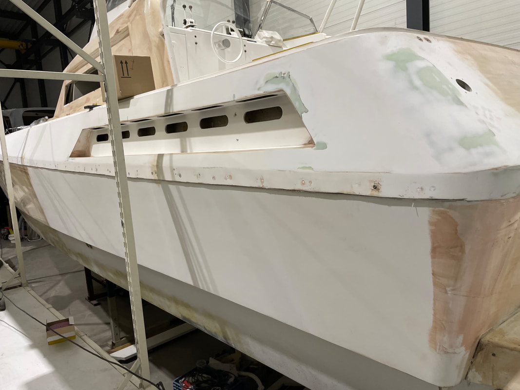 - Polyesterherstel en aanpassingen, gevolgd door een epoxy coating en Alexseal Yachtcoating voor een strakke, moderne uitstraling.